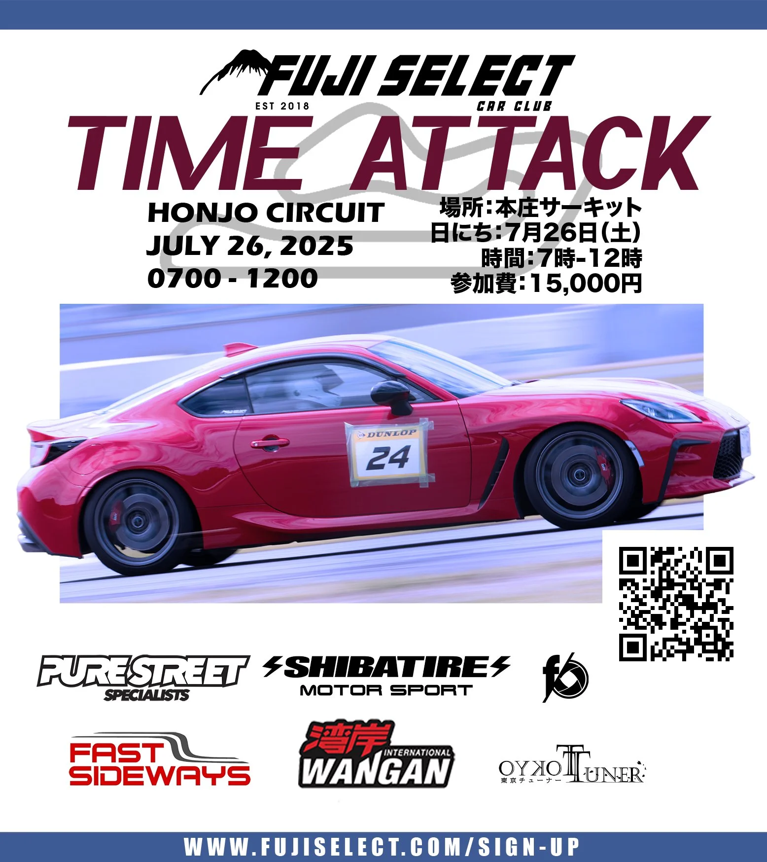 Currently, we host open track days at local circuits in the Kanto region. We are also partnered with professional drivers across multiple disciplines. This is done so we can learn from the best, hone our skills, and support drivers we genuinely believe in. A sponsorship from Fuji Select is more than a stamp of approval; it means our family is growing. In 2025, Fuji Select is transitioning into professional motorsports and have four members signed to Zap Speed Racing Team. Please contact us if you’re interested in collaboration or sponsorships. We appreciate your support.